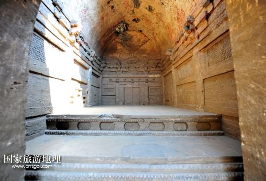 國(guó)家旅游地理 湖北襄陽(yáng)8月7日訊 8月7日拍攝的湖北谷城縣肖家營(yíng)仿木磚雕壁畫(huà)墓。當(dāng)日,湖北省襄陽(yáng)市谷城縣肖家營(yíng)北宋仿木磚雕壁畫(huà)墓內(nèi)部清理完畢,考古專家認(rèn)定墓中的宋代仿木磚雕、壁畫(huà)是湖北至今發(fā)掘的同時(shí)代古墓中保存最為完好的。
