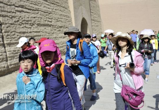 國家旅游地理 甘肅酒泉8月10日訊 8月10日,游客在嘉峪關(guān)城門前參觀。近一個月來,我國許多地區(qū)持續(xù)高溫天氣,西北地區(qū)成為眾多游客逃離酷暑、納涼觀光的好去處。據(jù)了解,目前甘肅省內(nèi)各大旅行社絲綢之路旅游線路預(yù)訂火爆。敦煌莫高窟、嘉峪關(guān)等多個景區(qū)游客爆滿,賓館甚至出現(xiàn)一房難求的現(xiàn)象,旅游部門提醒有出游需求的游客盡量提早預(yù)訂,保證順利出游。 /新華社記者 陳斌 攝