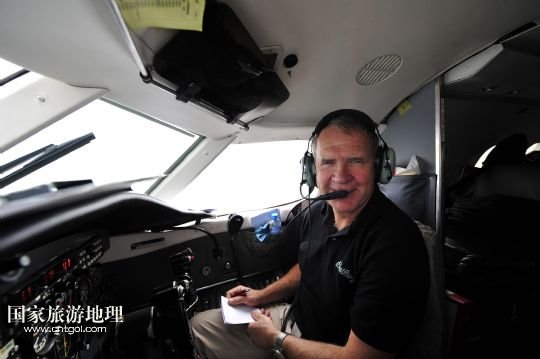 8月14日,在新疆克拉瑪依機場,百年靈噴氣機隊隊長雅克走下飛機。