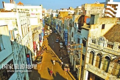 國家旅游地理 海南海口8月24日訊 ??隍T樓歷史文化街區(qū)(簡稱騎樓老街),是海口最具特色的街道景觀。2009年6月10日,首屆“中國歷史文化名街評選推介”活動(dòng)在北京揭曉,??隍T樓老街榜上有名。??隍T樓老街以其唯一性、獨(dú)特性榮獲首批十大“中國歷史文化名街”稱號(hào)。從2010年開始,??谑幸褑?dòng)騎樓老街改造項(xiàng)目。??隍T樓老街已成為了解??诔鞘袣v史的活畫冊。