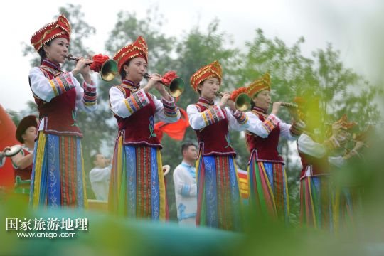 國家旅游地理 湖北宜昌9月17日訊 9月17日,宜昌長陽土家族藝術團在現(xiàn)場表演。當日,部分來自澳大利亞、西班牙、俄羅斯、捷克、蒙古國的藝術團來到湖北宜昌清江畫廊景區(qū),與當?shù)厥忻襁M行民俗藝術表演交流。