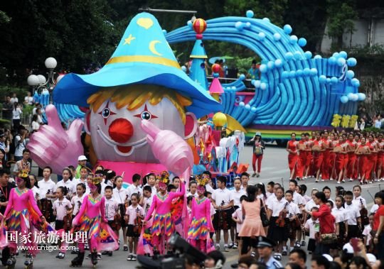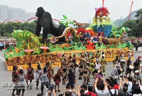 國(guó)家旅游地理 廣西柳州10月1日訊 9月30日,一輛巡游的花車經(jīng)過廣西柳州市駕鶴路。 當(dāng)日,2013中國(guó)柳州國(guó)際水上狂歡節(jié)以一場(chǎng)“狂歡大巡游”拉開帷幕。10輛造型各異的花車和國(guó)內(nèi)外各具特色的演藝團(tuán)體為市民和游客帶來一場(chǎng)歡樂盛宴。