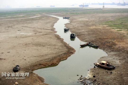 國家旅游地理 江西九江10月19日訊 10月19日,大批船只??吭诘退坏嫩蛾柡鞫疾俏鞲劭凇.?dāng)日,我國最大淡水湖鄱陽湖跌破10米的枯水位大關(guān),提前進入枯水期,這將對鄱陽湖濕地植被生長以及候鳥與野生魚類越冬造成影響。江西省水文局負(fù)責(zé)人介紹,星子站水位在10米以下就意味著鄱陽湖進入枯水期。受近期江西境內(nèi)降雨偏少、入湖水量減少等因素影響,19日10時,鄱陽湖星子站水位跌至9.98米,比同期多年均值偏低約4米。