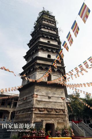 能仁禪寺中的大勝寶塔是九江市的標(biāo)志,始建于唐代宗大歷元年(公元766年),明洪武十二年(公元1379年)重建。塔為磚石結(jié)構(gòu),塔高43米,分七層六面,塔內(nèi)有磚砌梯階,可盤(pán)旋而上(10月18日攝)。