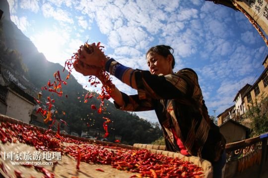 摘要:秋末冬初,安徽省皖南黃山市歙縣鄉(xiāng)村農(nóng)戶種植的玉米、南瓜、辣椒等農(nóng)作物陸續(xù)收獲,古村中房前屋后、庭院屋頂曬滿果實,構(gòu)成一幅幅美麗的“曬秋圖”。