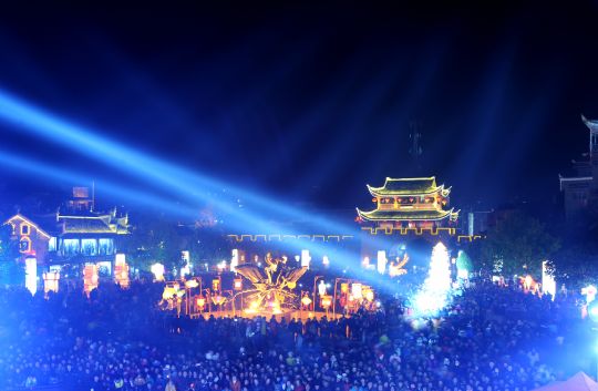 摘要:農(nóng)歷元宵節(jié),在湖南鳳凰古鎮(zhèn),當?shù)鼐用衽c游客歡聚一堂,共同參與各種民俗文化表演活動,慶祝節(jié)日。