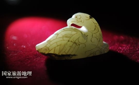 這是龍崗寺遺址出土的國家一級(jí)文物——漢代玉鷹(3月27日攝)。