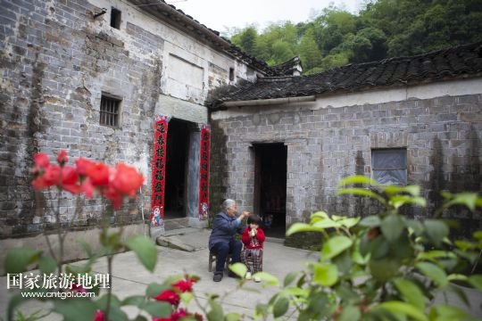 國家旅游地理 江西九江5月12日訊 5月12日,孩子們坐在土目源村的老房子前玩耍。空幽的山谷,不息的溪流,斑駁的石墻,古樸的石屋。在江西省北部山區(qū),有一座石屋山居的古村落——都昌縣大港鎮(zhèn)土目源村。