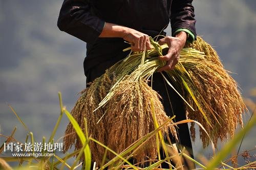 國家旅游地理 貴州黔東南10月11日訊 10月10日,在貴州省黎平縣順化瑤族鄉(xiāng)高孖村,瑤族群眾在收獲香禾糯。2013年以來,貴州省黔東南苗族侗族自治州黎平縣充分利用當(dāng)?shù)氐锰飒毢竦纳鷳B(tài)環(huán)境,采用傳統(tǒng)選育技術(shù),大量種植香禾糯。日前,當(dāng)?shù)剞r(nóng)戶今年種植的5萬畝香禾糯喜獲豐收。香禾糯是貴州省黎平縣國家地理標(biāo)志保護產(chǎn)品,是當(dāng)?shù)馗髯迦嗣裨陂L期的生產(chǎn)生活中選育栽培出來的優(yōu)良糯稻品種。新華社發(fā)(楊代富 攝)