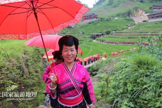 每年農(nóng)歷五月十四日、十五日是廣西桂林龍勝各族自治縣泗水鄉(xiāng)潘內(nèi)瑤寨紅瑤同胞與親朋好友聚會的日子,亦稱當(dāng)?shù)噩幷?ldquo;紅衣節(jié)”。紅瑤同胞相約在這期間開展唱瑤歌、評寨花、傳統(tǒng)刺繡、打旗公等傳統(tǒng)特色活動。紅瑤是瑤族的一個支系,因喜穿紅色衣服而得名。 /新華社發(fā)(石農(nóng)兵 攝)