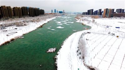 冬雪后的艾依河宛若一條玉帶穿城而過(guò)。 記者 王鼎 攝